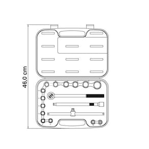 - Composição: 14 soquetes estriados 1/2": 8, 10, 11, 12, 13, 14, 15, 16, 17, 19, 21, 22, 24, 30 mm
