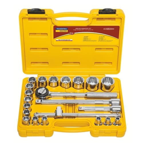 Intensifique a eficiência em serviços de manutenção com o Jogo de Soquetes Estriados Master Tramontina 43600022, o kit definitivo para quem exige torque superior e rigor técnico. Essencial para profissionais da área automotiva, manutenção industrial e centros de reparo, este conjunto de 22 peças simplifica e melhora a qualidade da fixação. Sua principal função é a instalação e remoção de fixadores com o máximo desempenho. A extensa gama de soquetes estriados assegura adaptação perfeita a múltiplos tamanhos, vital para a versatilidade e a finalização impecável dos reparos.