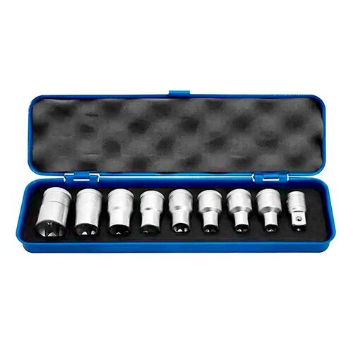 Jogo de Soquetes Hexalobular Perfil Tork GTX com 9 Peças E10 à E24 Encaixe de 1/2'' - Gedore 015644