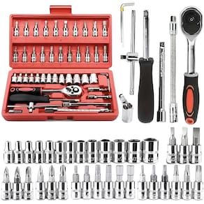 Equipe-se com o Kit de Ferramentas 46 Peças, projetado para oferecer versatilidade e durabilidade em manutenções domésticas e profissionais. Produzido em Aço Cromo Vanadium, garante máxima resistência ao desgaste e alta durabilidade. Versatilidade Completa: Inclui soquetes, chaves hexagonais, bits e acessórios, proporcionando soluções para diversas aplicações. Design Ergonômico e Seguro: A catraca reversível possui sistema Quick Release, permitindo trocas rápidas e eficientes das peças. Extensões e Articulações: Junta universal, extensões rígidas e flexível garantem acesso a parafusos em locais de difícil alcance. Organização e Transporte: Maleta compacta e resistente, feita de termoplástico leve, que não amassa. Conteúdo do Kit: 13 Soquetes sextavados – Encaixe ¼”: - 4 mm - 4,5 mm - 5 mm - 5,5 mm - 6 mm - 7 mm - 8 mm - 9 mm - 10 mm - 11 mm - 12 mm - 13 mm - 14 mm; 21 Soquetes tipo Bits: - Fenda: 4 mm - 5,5 mm - 7 mm; - Hexagonal: 3 mm - 4 mm - 5 mm - 6 mm - 7 mm - 8 mm; - Philips: PH1 - PH2 - PH3; - Pozi: PZ1 - PZ2 - PZ3; - Torx: T10 - T15 - T20 - T25 - T30 - T40. Ferramentas e Acessórios: - 3x Chaves Hexagonais L: 1,5 mm - 2 mm - 2,5 mm; - 1x Chave de força fixa ¼” com cabo 150 mm; - 2x Extensões 50 mm (2”) e 100 mm (4”); - 1x Extensão flexível 150 mm (6”); - 1x Catraca Reversível ¼” Quick Release (15 x 2,7 x 2,3 cm); - 1x Cabo de Força T; - 1x Junta Universal Articulada; - 1x Bit Adaptador; - 1x Maleta organizadora de termoplástico leve. Marca: Aquilae