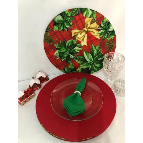 Contém: 06 Base Redonda 35x35cm Em MDF 06 Capas Para Base c/elástico Para Facilitar a lavagem 06 Guardanapos Tecido Colorido 30x30cm 06 Anéis Porta Guardanapos Modelo das argolas podem variar dependendo da disponibilidade
