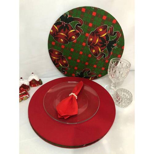 Contém: 06 Base Redonda 35x35cm Em MDF 06 Capas Para Base c/elástico Para Facilitar a lavagem 06 Guardanapos Tecido Colorido 30x30cm 06 Anéis Porta Guardanapos Modelo das argolas podem variar dependendo da disponibilidade