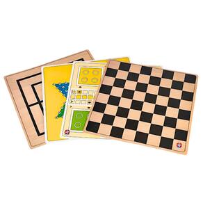 Contém na Embalagem 4 tabuleiros, 49 peões, 2 dados, 24 damas e manual de instruções
