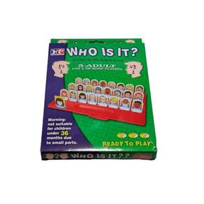 Adivinha quem é? , Quem é? Adivinhe o personagem misterioso do seu adversário, antes que ele adivinhe o seu. Inclui os tabuleiros clássicos, para dois jogadores. Recomendado para maiores de 6 anos