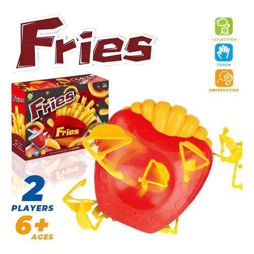 Retire as batatas fritas da embalagem, coloque a caixa de batatas fritas sobre a mesa e cada jogador, na sua vez, coloca uma batata frita as batatas fritas ficam presas como mostrado na imagem . Quando as batatas fritas quicarem, o jogador perde.
