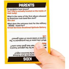 Material: papel Cor: vermelho Tamanho do pacote: 24 x 24 x 5 cm Peso do pacote: 0,5 kg Lista de embalagem: 1 x jogo de tabuleiro Beat the Parents (cartas e peças) Beat the Parents Board Game: um divertido confronto familiar em que as crianças competem contra os pais para responder perguntas triviais e completar desafios. É um jogo perfeito para famílias que gostam de competições amistosas. Apostas de alto risco: O jogo inclui uma reviravolta única: os jogadores podem fazer apostas para apostas extras. As crianças apostam em desafios divertidos, como fazer tarefas domésticas, enquanto os pais apostam no resultado do jogo, tornando cada rodada mais emocionante. Ideal para diversão em família: perfeito para noites de jogos em família, Beat the Parents oferece uma jogabilidade envolvente para maiores de 8 anos. Os jogadores podem testar seus conhecimentos enquanto riem e se unem em uma competição divertida. Fácil de jogar: com regras simples e rodadas rápidas, Beat the Parents é fácil de entender e jogar para todos. O jogo é perfeito para 2 a 4 jogadores, e cada sessão dura cerca de 30 minutos para uma diversão rápida e envolvente. Incentiva a interação: Beat the Parents promove interação, aprendizado e humor. O jogo foi desenvolvido para promover a comunicação e criar momentos memoráveis, enquanto crianças e pais se desafiam.