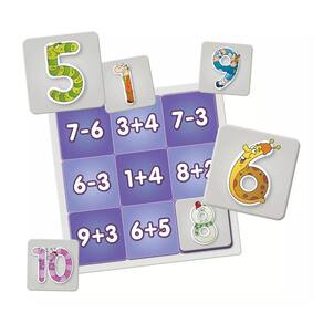 6 + 2, 11 - 5, 10 - 3... Qual dessas contas dá 7 como resultado? Jogando, a criança descobrirá que aprender matemática pode ser uma brincadeira superdivertida!