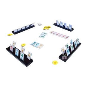 Dimensões: medidas das bases 18 x 4 x 1,3 cm, medidas das cartas 4 x 2,5 x 0,2 cm, medidas das fichas 2,5 cm de diâmetro e medidas da caixa 39,5 x 26,7 x 5,6 cm.