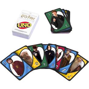 Descrição do produto : " O jogo de cartas UNO Harry Potter e divertido e rapido, agora com personagens iconicos do mundo de Harry Potter! Junte-se a Harry, Hermione, Ron, Professor Dumbledore e seus personagens favoritos de Hogwarts para uma noite de jogo UNO. Os jogadores correm para se livrar de todas as suas cartas, combinando uma carta em sua mao com a carta atual mostrada no topo do baralho. Ganhe pontos sendo o primeiro a se livrar de todas as cartas da sua mao. Cartas de acao especiais proporcionam momentos de mudanca de jogo, pois cada uma desempenha uma funcao para ajuda-lo a derrotar seus oponentes. Existe ate um cartao especial de regras do Chapeu Seletor! Quando voce joga esta carta, outro jogador de sua escolha deve continuar comprando cartas ate encontrar uma carta da Grifinoria! Outras cartas de acao incluem Passa a Vez, Inversao, Bisca 2 e Joker. O primeiro jogador ou equipe a chegar as 500 pontos ganha – e quando voce estiver com apenas uma carta, nao se esqueca de gritar “UNO!”. Um otimo presente para fas de Harry Potter a partir de 7 anos. Para 2 a 10 jogadores, a partir de 7 anos. As cores e decoracoes podem variar. : " Detalhes técnicos : Marca: Mattel : Referência: FNC42 : Idade recomendada: 7 : Possui Luzes: Não : Possui Sons: Não : Dimensões aproximadas da embalagem: 14 x 9 x 2 cm (A x L x C) : Ean: 887961587579 : Contém na Embalagem : Inclui 112 cartas mais instrucoes.