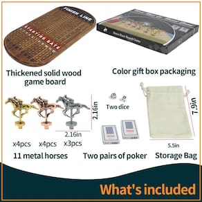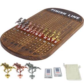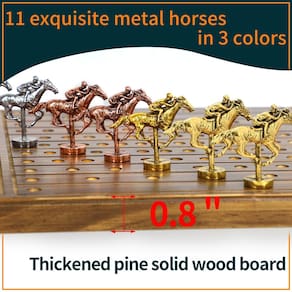 Este jogo pode acomodar até 11 jogadores e o tamanho do tabuleiro de xadrez é de 53 x 30 x 2 cm. Inclui um total de 11 cavalos: 4 de ouro, 4 de ouro rosa e 3 de prata, bem como 4 dados, 2 caixas de pôquer, uma bolsa de cavalo e instruções de jogo. A corrida de cavalos realista é alcançada com metal puro em vez de plástico barato e facilmente danificado. O jogo de tabuleiro de corrida de cavalos não é apenas um jogo de estratégia e sorte, mas também ajuda a melhorar as habilidades de pensamento crítico, pensamento estratégico e capacidade de tomada de decisão. gravatas. - Fácil de jogar: o jogo de tabuleiro de corrida de cavalos é fácil de aprender e adequado para jogadores de todas as idades e níveis de habilidade. Cada jogador escolhe um cavalo e usa dados para mover seu cavalo ao longo da pista. A primeira pessoa a chegar à linha de chegada ganha. É simples assim! Este jogo pode acomodar até 11 jogadores e o tamanho do tabuleiro de xadrez é de 53 x 30 x 2 cm. Inclui um total de 11 cavalos: 4 de ouro, 4 de ouro rosa e 3 de prata, bem como 4 dados, 2 caixas de pôquer, uma bolsa de cavalo e instruções de jogo. - CAVALO DE METAL, NÃO PLÁSTICO: A corrida de cavalos realista é alcançada com metal puro em vez de plástico barato e facilmente danificado. Feito de madeira maciça de alta qualidade e medindo 2 cm de espessura, este tabuleiro de jogo não é apenas bonito, mas também durável. O exterior do tabuleiro de jogo apresenta um revestimento impermeável especial que evita deformação ou corrosão. Cantos lisos são mais seguros para evitar colisões e lesões! - DIVERSÃO PARA TODAS AS OCASIÕES: Se você está organizando uma noite de jogo em família, uma festa de aniversário, seja você um entusiasta experiente de corridas de cavalos ou apenas procurando um novo jogo divertido para jogar com amigos e familiares, com sua jogabilidade emocionante e vantagem competitiva, certamente será um sucesso com todos que jogam. - Valor educacional: o jogo de tabuleiro de corrida de cavalos não é apenas um jogo de estratégia e sorte, mas também ajuda a melhorar as habilidades de pensamento crítico, pensamento estratégico e habilidades de tomada de decisão, e passar tempo com a família e amigos. É uma ótima maneira de reunir as pessoas e criar memórias duradouras. - ÓTIMA IDEIA DE PRESENTE: Se você está procurando um presente de aniversário, um presente de feriado, nosso jogo de tabuleiro de corrida de cavalos é a escolha perfeita. Com sua embalagem atraente e jogabilidade envolvente, certamente será um sucesso para quem ama um bom jogo. Então, o que você está esperando? Pegue seus amigos e familiares e prepare-se para correr!