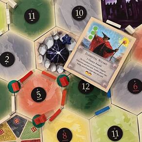 Um Golem Elemental foi invocado e está causando estragos em toda a ilha. Você pode lançar proteções mágicas suficientes para salvar seus assentamentos? Quando um 7 é lançado, o Golem Elemental é invocado e começa seu caminho de destruição. O jogador que acertou o 7 colocará o Golem Elemental em um hexágono terrestre de sua escolha. Qualquer feitiço com um Golem Elemental não produz mais recursos e os jogadores criados com base nesse hexágono perdem 1 recurso para o Elemental, devolvendo 1 recurso de sua escolha para o banco. Uma vez que o Golem Elemental é colocado, ele imediatamente entra em fúria. - Feito nos EUA - Feitiço de Invocação Elemental personalizado - Golem Elemental Meeple de madeira - Cartão de bônus Elemental Wizard - Tokens de proteção mágica