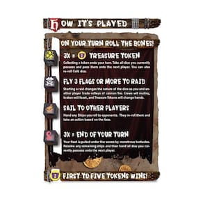 Jogue os dados para tentar pegar ouro do mar, ou use os dados para lutar contra outros piratas e roubar seu ouro! Lembre-se de que eles revidarão e poderão roubar seu ouro de VOCÊ. E, claro, há o kraken com que se preocupar...