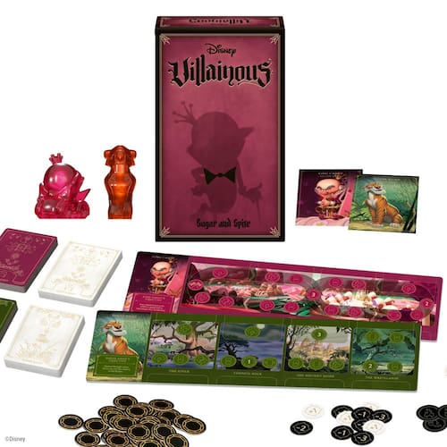 Jogo de tabuleiro e cartas Ravensburger Disney Villainous: Sugar and Spite Family para maiores de 10 anos — PERSONAGENS QUE VOCÊ ADORA — Jogue como King Candy ou Shere Khan da Disney e encontre todos os capangas e heróis de seus filmes da Disney Detona Ralph e The Jungle Book, incluindo Baloo, Kaa e Princess Vanellope. - INSTRUÇÕES CLARAS — Fácil de aprender com instruções claras! Cada vilão vem com seu próprio guia para inspirá-lo com estratégias e dicas. Visite @ravensburgerna no YouTube também para ver guias em vídeo! - QUALIDADE EM QUE VOCÊ CONFIA — 2 tabuleiros, 2 guias de vilões, 60 cartas de vilão, 30 cartas de destino, 45 fichas, 2 cartas de referência, 2 guias de vilões, instruções — MISTURE E COMBINE VILÕES — Combine Sugar e Spite com personagens de qualquer produto Disney Villainous para jogos de 2 a 4 jogadores, incluindo Oogie Boogie (Disney Villainous: Fillainous: Fillainous with Fright) e Scar (Disney Villainous: Evil Comes Prepared) e Rainha Má (Disney Villainous: Wicked to the Core). - PRESENTE PARA FÃS DA DISNEY — Repleto de arte e detalhes personalizados para serem apreciados pelo maior cinéfilo da Disney, Disney Villainous é o presente perfeito para fãs dedicados da Disney, sejam eles jogadores experientes ou iniciantes em jogos de tabuleiro e cartas.