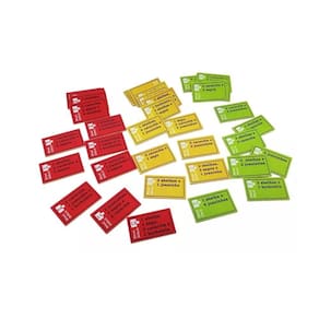 04 gabaritos e 36 fichas com os temas dos níveis.