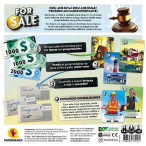 For sale é um jogo rápido e divertido de compra e venda de propriedades onde os jogadores são forçados a tomarem decisões difíceis a todo minuto.