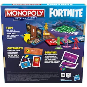 Hasbro Gaming Monopoly Flip Edition: jogo de tabuleiro Fortnite para idades de 13 anos inspirado no videogame Fortnite, jogos de tabuleiro para adolescentes e adultos, 2-4 jogadores - Jogo Monopolítico inspirado no ForTNITE: Flip. Outsmart. Sobreviver. Neste jogo de tabuleiro Monopoly Flip Edition: Fortnite, não se trata do que os jogadores possuem, é sobre quanto tempo eles podem sobreviver - Vire os azulejos para mudar de tabuleiro: o tabuleiro dinâmico inclui 8 peças de ilha que viram para mudar o tabuleiro e revelar locais conhecidos do Fortnite, perigos e muito mais. Cuidado com uma armadilha de danos! - Seja o último jogador em pé: neste battle royale, os jogadores ganham e perdem fichas Health Point (HP) em vez de dinheiro do Monopoly. Jogadores que perdem seu último HP estão fora! Seja o último jogador com HP a vencer - Construa uma carga: cada jogador escolhe uma carta de carregamento com um item permanente que lhes dá uma vantagem sobre os outros jogadores. Armazene itens de loot Chest lá e use-os para atacar ou curar - ATIVAR AÇÕES ESPECIAIS: role o dado de ação para aumentar os pontos de saúde, visar oponentes e comprar cartas do modo de jogo que liberam a tempestade - Presente legal para fãs de Fortnite: procurando presentes para fãs de Fortnite? Este jogo Monopoly com tema Fortnite é uma ótima escolha e é um jogo de tabuleiro familiar emocionante para adolescentes e adultos