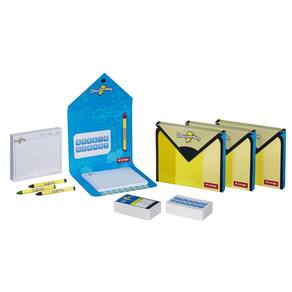 - Inclui 4 estações de sorteio, 180 cartas, 4 lápis de cor, 4 blocos de papel, 4 clipes rastreadores de moedas e guia de jogo