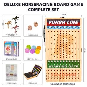 Apresentando o melhor jogo de tabuleiro de corrida de cavalos de 21" feito de madeira maciça premium para uma durabilidade imbatível. Desdobra-se em generosos 21 x 11,8 polegadas, mas se dobra convenientemente até um tamanho compacto para facilitar o armazenamento e a portabilidade. Participe da DIVERSÃO CLÁSSICA com até 12 JOGADORES, tornando-o o JOGO DE CORRIDA DE CAVALOS PERFEITO para NOITES DE JOGOS EM FAMÍLIA ou VIAGENS. Completo com 60 FICHAS DE PÔQUER, 11 CAVALOS DE METAL, 2 DADOS DE MADEIRA e muito mais, tudo organizado em uma CAIXA DE ESTILO VINTAGE. Nosso conjunto de luxo garante horas de pura emoção baseada na sorte, sem exigir nenhuma estratégia, apenas diversão! Um presente de alta qualidade para qualquer ocasião que promete criar memórias duradouras. Para qualquer dúvida ou preocupação, nossa equipe está sempre pronta para ajudar. Não perca — CONVIDE A EMOÇÃO DA CORRIDA PARA SUA CASA HOJE! - [CONJUNTO DE JOGOS DE CORRIDA DE CAVALOS DELUXE]: O jogo de tabuleiro de corrida de cavalos inclui 60 fichas de pôquer, um tabuleiro de corrida de madeira maciça de alta qualidade, 11 cavalos de metal (4 dourados, 3 verde-oliva), 2 dados de madeira feitos à mão, 2 cartas de baralho, um manual do usuário e uma caixa de armazenamento para uma experiência de jogo de tabuleiro sequencial - [QUALIDADE PREMIUM]: O jogo de corrida de cavalos é feito à mão e polido com madeira de pinho de alta qualidade, criando uma superfície mais lisa e evitando deformações. Com um processo aprimorado, ele possui spray colorido de camada dupla para durabilidade à prova d'água e resistente à corrosão - [ARMAZENAMENTO E PORTABILIDADE CONVENIENTES]: um grande jogo de tabuleiro de corrida de cavalos de 21" pode ser facilmente dobrado até um tamanho compacto de 11,6 x 6,3". A espuma embutida e o design vintage da trava mantêm todos os acessórios bem organizados no estojo de armazenamento - [JOGO DE TABULEIRO CLÁSSICO PARA UMA NOITE DE JOGO]: Jogo de pura sorte! Qualquer pessoa pode começar e jogar sem precisar aprender e descobrir estratégias. O primeiro cavalo de metal a chegar à LINHA DE CHEGADA vence! Até 11 jogadores podem jogar ao mesmo tempo. O jogo de corrida de cavalos Ideal para amigos, família, festas, jogos noturnos ou viagens - [PRESENTE PARA TODOS] O design aprimorado, o artesanato de alta qualidade e a jogabilidade competitiva tornam o jogo de cavalos um emocionante presente de aniversário, Halloween, Dia de Ação de Graças e Natal para qualquer pessoa. Este jogo de corrida de cavalos criará memórias maravilhosas para suas reuniões. Se você tiver alguma dúvida, não hesite em nos contatar