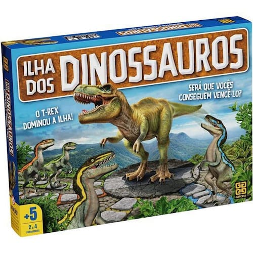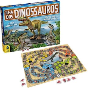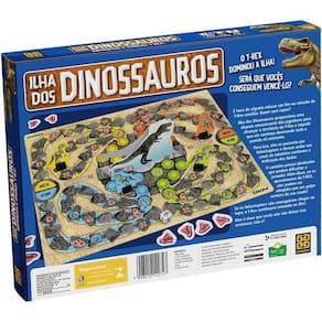 É hora de alguém colocar um fim no reinado do T-Rex comilão. Quem será capaz Ilha dos dinossauros proporciona uma disputa emocionante dos jogadores para alcançar o território do T-Rex é assim impedir que ele continue devorando toda a comida ali existente. Para isso, eles passarão por Velociraptors e devem andar nas casas do tabuleiro conforme a indicação dos dados. O caminho possui obstáculos que podem dificultar a jornada além disso aos aproximarem do T-Rex eles podem ser atingidos por um golpe certeiro da sua cauda Se os Velociraptors não conseguirem chegar ao topo, o T-Rex continuará reinando na ilha Mas é claro vocês que vocês não vão deixar isso acontecer, não é