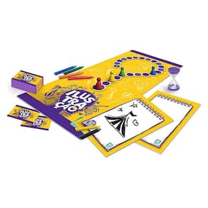 Neste jogo, rapidez e conhecimento vencem a brincadeira! São 240 cartas com nomes de personagens, lugares e com coisas para o jogador representar como preferir: desenho, mímica ou perguntas. Quem adivinhar a palavra em menos tempo com menos dicas ganha mais pontos e avança no tabuleiro. A disputa pode ser individual ou em equipes. Acompanha a ampulheta de tempo, lousinha para desenhar e giz de cera.