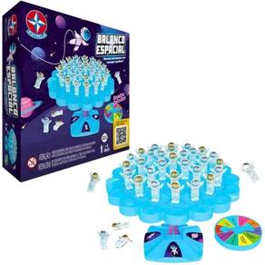 Prepare-se para uma aventura cosmica com Balanco Espacial! Cada jogador deve comecar escolhendo uma cor de astronauta azul ou dourado, girar a roleta e seguir a acao indicada que pode variar entre colocar varios astronautas ate pular a jogada. Caso algum astronauta caia da base durante a sua jogada, deve-se pega-lo para si. O jogo acaba quando um dos jogadores conseguir colocar todos os astronautas de sua cor na base e estiver sem nenhum astronauta em maos. DICA: ao colocar os astronautas na base bamba, priorize os astronautas da sua cor, escolhida no inicio do jogo.