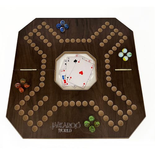 * Jogo de tabuleiro Jackaroo: é um jogo estratégico baseado em equipe 2-4 popular no Oriente Médio. É um jogo de tabuleiro de cartas e bolinhas de gude usando seu próprio tabuleiro de madeira com design exclusivo com jogadores se separando. O objetivo deste jogo de tabuleiro de carbles é que os jogadores movam suas bolinhas de gude ao redor do tabuleiro para alcançar a zona de segurança usando suas cartas na mão. Este jogo de tabuleiro de bolinhas de gude e coringa oferece elementos tradicionais de madeira, convidando os jogadores a desfrutar de sua reunião e ter uma ótima experiência! É uma mistura de jogo de tabuleiro de mármore e carbles com cartas para uma experiência de jogo dinâmica. * Como jogar Jackaroo: cada jogador começa com quatro bolinhas de gude na área "iniciar" e usa cartas para movê-las ao redor do tabuleiro para alcançar a área "casa". As cartas ditam ações como começar uma bola de gude, avançar ou trocar de lugar com oponentes. Os jogadores se revezam jogando cartas estrategicamente para avançar suas bolinhas de gude, bloquear oponentes ou apoiar colegas de equipe. A primeira equipe a colocar todas as bolas de gude de gude na área "doméstica" vence. Saiba mais sobre o tabuleiro de jogo de mármore de madeira com o manual e assista ao nosso explicador de vídeo animado totalmente detalhado. * Jackaro de nogueira: é caracterizado por sua cor de cerne marrom escuro, enriquecido com marcas escuras, criando uma estética única e especial. Esta madeira especial melhora seu apelo visual e garante que se destaque onde quer que seja colocada. Este jogo de tabuleiro de coringas e bolinhas de gude de madeira captura a essência das experiências de jogo de tabuleiro de bolinhas sujas em um formato lindamente trabalhado. * Fácil e portátil: a portabilidade do Jackaroo é resultado de seu design dobrável especial. Também é compacto e leve, garantindo que ocupe espaço mínimo e seja fácil de manusear. É um jogo de tabuleiro de viagem que pode ser transportado sem esforço em sua bolsa Jackaroo World exclusiva, tornando-o fácil de transportar e visualmente atraente. Isso aumenta o prazer geral da experiência de 4 jogadores do jogo de tabuleiro Wahoo, permitindo que você jogue este jogo de gude de gude e coringa onde quer que vá. * Perfeito para entusiastas de jogos: seja você um fã do jogo de tabuleiro U Dogg ou do jogo de tabuleiro tock, este jogo de tabuleiro de madeira oferece diversão infinita. Nosso conjunto de madeira de jogo de tabuleiro de mármore inclui tudo o que é necessário para o jogo de tabuleiro de coringas e bolinhas de gude, garantindo que todos os jogadores possam participar da emoção de mover seu tabuleiro de gude de gude pelo layout do jogo de tabuleiro Tock. Combinando elementos de um jogo de tabuleiro de cartas e bolinhas de gude com a profundidade estratégica de um jogo de tabuleiro de carble, este conjunto garante horas de entretenimento. É uma experiência de perseguição de mármore como nenhuma outra. * Conjunto completo de jogos de madeira: Tabuleiro Jackaroo - Jackaroo World Bag - Manual de instruções - Cartões (uma mesa completa de cartas) 52 - Mármores (4 conjuntos de cores diferentes) 16. Com 4 jogadores prontos para abraçar os desafios e criar memórias inesquecíveis com amigos e familiares. - Jogo de tabuleiro Jackaroo: é um jogo estratégico baseado em equipe 2-4 popular no Oriente Médio. É um jogo de tabuleiro de cartas e bolinhas de gude usando seu próprio tabuleiro de madeira com design exclusivo com jogadores se separando. O objetivo deste jogo de tabuleiro de carbles é que os jogadores movam suas bolinhas de gude ao redor do tabuleiro para alcançar a zona de segurança usando suas cartas na mão. Este jogo de tabuleiro de bolinhas de gude e coringa oferece elementos tradicionais de madeira, convidando os jogadores a desfrutar de sua reunião e ter uma ótima experiência! É uma mistura de jogo de tabuleiro de mármore e carbles com cartas para uma experiência de jogo dinâmica. - Como jogar Jackaroo: cada jogador começa com quatro bolinhas de gude na área "iniciar" e usa cartas para movê-las ao redor do tabuleiro para alcançar a área "casa". As cartas ditam ações como começar uma bola de gude, avançar ou trocar de lugar com oponentes. Os jogadores se revezam jogando cartas estrategicamente para avançar suas bolinhas de gude, bloquear oponentes ou apoiar colegas de equipe. A primeira equipe a colocar todas as bolas de gude de gude na área "doméstica" vence. Saiba mais sobre o tabuleiro de jogo de mármore de madeira com o manual e assista ao nosso explicador de vídeo animado totalmente detalhado. - Jackaro de nogueira: é caracterizado por sua cor de cerne marrom profundo, enriquecido com marcas escuras, criando uma estética única e especial. Esta madeira especial melhora seu apelo visual e garante que se destaque onde quer que seja colocada. Este jogo de tabuleiro de coringas e bolinhas de gude de madeira captura a essência das experiências de jogo de tabuleiro de bolinhas sujas em um formato lindamente trabalhado. - Fácil e portátil: a portabilidade do Jackaroo é resultado de seu design dobrável especial. Também é compacto e leve, garantindo que ocupe espaço mínimo e seja fácil de manusear. É um jogo de tabuleiro de viagem que pode ser transportado sem esforço em sua bolsa Jackaroo World exclusiva, tornando-o fácil de transportar e visualmente atraente. Isso aumenta o prazer geral da experiência de 4 jogadores do jogo de tabuleiro Wahoo, permitindo que você jogue este jogo de gude de gude e coringa onde quer que vá. - Perfeito para entusiastas de jogos: seja você um fã do jogo de tabuleiro U Dogg ou do jogo de tabuleiro tock este jogo de tabuleiro de madeira oferece diversão infinita. Nosso conjunto de madeira de jogo de tabuleiro de mármore inclui tudo o que é necessário para o jogo de tabuleiro de coringas e bolinhas de gude, garantindo q