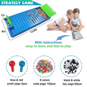 Codebreaker Cracking Leisure Strategy Brinquedo de tabuleiro interativo infantil para pais e filhos O que está incluído: - 1 tabuleiro com bandeja embutida para armazenar pinos - 192 pinos de código em 8 cores - 60 pinos de chave em 2 cores (preto e branco) - 2 pinos de ponta vermelha e azul representando os participantes do jogo Configurando o jogo O jogador atuando como Codemaker define pinos de cores de 5 dígitos código secreto. O Codemaker pode usar cores repetidas ou diferentes, ou até mesmo deixar alguns orifícios vazios. Os jogadores podem escolher os pinos vermelhos e azuis para se representar para fins de pontuação. Como jogar: ? O decifrador coloca 5 pinos coloridos em cada uma das fileiras de furos na zona de quebra de código. ? Ao lado da área de quebra de código está a área de prompt de resposta. O criador de códigos coloca pinos brancos ou pretos para alertar o decifrador na posição correspondente: - Preto significa que a cor e a posição estão corretas. - Branco significa que a cor está correta, mas a posição está incorreta. - Deixe vazio se a cor e a posição estiverem incorretas. No final de uma linha de testes de quebra de código, o decifrador usa as informações fornecidas pelo criador de códigos na linha anterior para continuar a deduzir o código na próxima linha. ? O jogo pode ser jogado em dois níveis de dificuldade diferentes: Nível 1: o código secreto é composto de 5 cores diferentes, facilitando adivinhar. Nível 2: as cores no código secreto podem ser repetidas Nível 3: cores repetidas e um ou dois orifícios podem ser deixados vazios, tornando mais difícil adivinhar a solução correta. O criador de códigos também pode confundir o decifrador colocando aleatoriamente um pino de prompt preto, deixando o codebreaker sem como começar. ? Quando o decifrador quebra o código, esse jogador coloca um pino vermelho ou azul representando-se ao lado do número de linhas em que o código foi quebrado. ?Os jogadores se revezam para trocar funções e o jogador que quebrar o código menos vezes ganha! Mais de 2.000 combinações de códigos possíveis tornam o jogo diferente sempre. Então deixe o jogo começar agora! - Disjuntores de código: um jogo de tabuleiro desafiador e lógico, um dos jogos de tabuleiro populares recentes. Este jogo de tabuleiro de sequência é fácil de aprender e rápido de jogar. Jogo de quebra de código com milhares de combinações de códigos possíveis, cada jogo é garantido para ser um quebra-cabeças! Você poderia criar um código inquebrável ou decifrar o código do seu oponente com o menor número de movimentos? Deixe os jogos começarem - Excelente qualidade: feito de plástico HIPS de alta qualidade, leve e fácil de transportar, você pode jogar este jogo de tabuleiro a qualquer hora e em qualquer lugar. Medindo 35,5 x 15 x 2,5 cm, o tabuleiro é lindamente projetado com uma bandeja de armazenamento embutida, perfeita para organizar esses acessórios de jogo de tabuleiro - Educacional STEM: o jogo de tabuleiro de sequência mantém as crianças longe de produtos eletrônicos e pode desenvolver a inteligência cerebral e melhorar as habilidades de raciocínio lógico durante o processo de jogo de tabuleiro para todas as idades. Ajude as crianças a crescer e aprender com os brinquedos STEM & STEAM - Jogo familiar: os jogadores se revezam configurando e quebrando códigos de cores, usando lógica, raciocínio e até mesmo um pouco de sorte para combinar com os códigos neste jogo de quebra de códigos. Após cada movimento, o criador de códigos dá pistas sobre o disjuntor de código. Ele fortalece o relacionamento entre pais e filhos quando jogado em uma noite de jogos em família. Este jogo de codinome é desafiador o suficiente para manter adultos e crianças entretidos, mas não muito chato que os atraia para continuar jogando várias vezes - Bom presente: uma caixa de embalagem simples e animada é um ótimo presente para crianças e adultos. Adultos, adolescentes e crianças vão adorar este jogo de tabuleiro de estratégia. Adequado para brincar em casa, escola, acampamento ou viagens