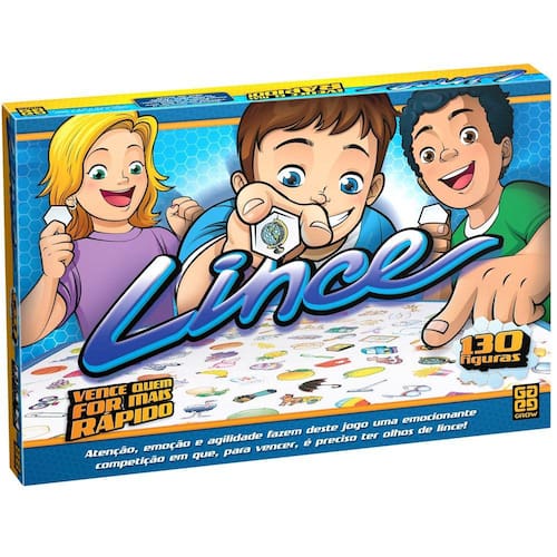 JOGO DE TABULEIRO - LINCE - GROW: Lince é uma movimentada competição na qual sua rapidez e seu reflexo decidem cada jogada. Todos os jogadores recebem as cartelas com figuras que estão no tabuleiro. Depois do sinal, devem tentar localizá-las rapidamente, com suas fichas coloridas. Quem colocar primeiro as fichas será o vencedor. Por isso, não perca tempo! Você pode vencer ou perder em questão de segundos! Agora, respire fundo, abra bem os olhos e mostre que você é fera neste desafio. COMO JOGAR LINCE: - Jogo Lince é ideal para 2 a 6 participantes de todas as idades. - Aqui, sua rapidez e seus reflexos fazem toda a diferença! As regras do jogo são as seguintes: os jogadores recebem as cartelas com figuras que estão no tabuleiro. Depois do sinal, é preciso localizá-las rapidamente, com suas fichas coloridas. - Quem colocar as fichas primeiro será o vencedor! - Por isso, não perca tempo! Você pode vencer ou perder em questão de segundos! - Todas as regras do jogo Lince estão incluídas junto com o manual do jogo. Basta encontrar suas companhias, seguir as regras e partir para a diversão!! INFORMAÇÕES: - Produto: Jogo Lince - Marca: Grow - Tipo: Jogo de Tabuleiro - Jogadores: de 2 a 6 participantes - Categoria: Infantil - Tempo estimado de jogo: 10 minutos - Conteúdo: 1 tabuleiro, 1 saco plástico, 18 fichas, 130 cartelas ilustradas e 1 manual de instruções - Recomendação: para crianças a partir de 05 anos de idade ESPECIFICAÇÕES: - Referência: 00432 - Embalagem (C x A x L): 33.5 x 23 x 04 cm - Embalagem (Peso): 0.370 kg - Material / Composição: papel e papel cartão - Registro: CE-BRI/ICEPEX-N 01264-25 - NM480-2004 OCP 0046 - Certificado: Órgãos Autorizados - OCP´S (Organismos de Certificação de Produtos) BENEFÍCIOS DE JOGAR: - Eleva a autoestima - Exercita a memória - Estimula o raciocínio - Exercita o imaginário - Desenvolve a criatividade - Desenvolve percepção visual - Desperta a atenção e curiosidade - Desenvolvimento neuropsicológico - Estimula habilidades motoras básicas - Incentiva a comunicação e linguagem - Desenvolve aspectos emocionais e afetivo AVISO: - As imagens são meramente ilustrativas - Os tamanhos e medidas são aproximados - As cores e estampas dos produtos podem ter variações - As informações são de responsabilidade do fabricante ou fornecedor
