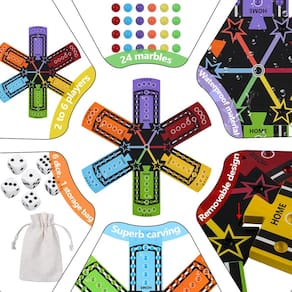 6 jogadores Wahoo Marble Game Splicing - ?Conjunto de jogo de tabuleiro luxuoso?Nossos produtos são feitos de madeira maciça de alta qualidade e impressos com cores e padrões requintados. Este produto inclui um conjunto de tabuleiros de jogo (1 tabuleiro central e 6 tabuleiros de emenda), 24 bolinhas de gude (4 de cada cor), 6 dados e 1 bolsa de armazenamento. - ?Fácil de instalar?Nosso tabuleiro de jogo consiste em um tabuleiro central e seis placas de emenda. Pode ser jogado por 2-4 pessoas ao mesmo tempo. Você pode combinar tabuleiros com base no número de pessoas jogando. Em comparação com outras placas Wahoo no mercado, é muito mais leve. Quando todas as tábuas de madeira são separadas, seu volume fica menor e é muito conveniente tirá-las para brincar. - ?Jogos de tabuleiro clássicos?Este é um jogo de mármore clássico onde você pode aprender estratégias e pensamento crítico. Este jogo sempre foi amado pelas pessoas, seja uma reunião de família ou uma festa de amigos, é perfeito para jogar juntos. Este é um jogo de tabuleiro rápido e ferozmente competitivo, e acredito que você pode ganhar mais felicidade no jogo. - ?Adequado como presente?Nosso produto é feito de madeira maciça de alta qualidade, e cada placa é resistente, durável, impermeável e à prova de umidade. E seu design também é muito bonito. Se você o apresentar para sua família e amigos, eles definitivamente ficarão muito felizes. Este produto inovador é suficiente para impressionar as pessoas. - ?Garantia pós-venda?Estamos comprometidos em fornecer aos clientes produtos e serviços de alta qualidade. Cada um dos nossos produtos é de alta qualidade, e nós os embalaremos cuidadosamente para que você os entregue com segurança em suas mãos. Se você tiver alguma insatisfação com o produto que recebeu, para ajudá-lo a resolvê-lo. Vamos nos esforçar para resolver todas as suas preocupações.
