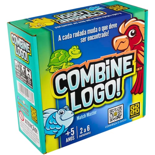 Descrição do produto : " Descubra a diversão do Combine Logo (Match Master) da Grow! Um jogo de cartas empolgante, cheio de cores, animais e números, que desafia a memória, a atenção e a rapidez de raciocínio das crianças. A cada rodada, os jogadores viram cartas em busca de pares que combinem entre si — pode ser o mesmo animal, a mesma cor ou a mesma quantidade. Quem conseguir juntar o maior número de cartas vence a partida! Perfeito para reunir a família e os amigos, o jogo é indicado para crianças a partir de 5 anos e pode ser jogado por 2 a 6 participantes. Além de divertido, ele estimula o aprendizado de forma leve e interativa, garantindo momentos de risadas e muita competição saudável. Leve já o Combine Logo e transforme qualquer encontro em uma brincadeira inesquecível!\nComo Jogar 1 - Cada jogador vira a carta de cima do baralho, colocando-a ao lado do monte 2 - Os próximos jogadores fazem o mesmo e continuam virando uma após outra, até achar um par que corresponda om a categoria que aparece na carta do topo do monte 3 - Para marcar pontos, o jogador deve achar pelo menos um par (Duas Cartas) que tenham a mesma categoria do topo do monte de cartas, ou seja: pelo menos 2 cartas com o mesmo ANIMAL, com A MESMA COR ou A MESMA QUANTIDADE. 4- Tente coletar o máximo de cartas e vença o jogo!\nA partir de 5 anos 2 a 6 jogadores tempo estimado de jogo: 10 minutos\nComponentes 80 cartas para combinar e manual de instruções : "