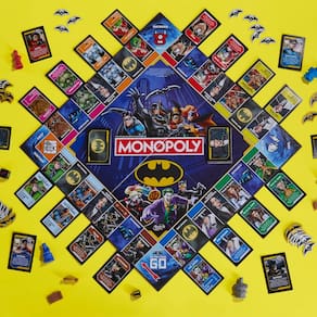 Jogo de tabuleiro Monopoly Batman Edition | Jogo de monopólio para fãs do Batman | A partir de 8 anos | 2 a 4 jogadores | Jogos de família | Jogos de estratégia para crianças e adultos - JOGO MONOPOLY COM TEMA DO BATMAN: capture os vilões para salvar Gotham City! Este jogo Monopoly Batman Edition combina a jogabilidade clássica do Monopólio com personagens, temas e obras de arte icônicos do Batman - JOGUE COMO UM HERÓI FAVORITO: Inclui 4 fichas de personagem de plástico: Batman, Robin, Asa Noturna e Batgirl. Lance o dado de ação para ativar a habilidade de um personagem e ganhar vantagem sobre os outros jogadores - GAMEBOARD APRESENTA VILÕES FAMOSOS: Nesta edição, vilões substituem propriedades e cartões telefônicos substituem títulos. Viaje pelo tabuleiro usando batarangs para capturar vilões, como Harley Quinn e The Joker - COLETE BATARANGS: Em vez de dinheiro do Monopólio, os jogadores pagam com batarangs. Quanto mais vilões um jogador captura, mais batarangs ele pode coletar de outros jogadores. Aquele com mais batarangs vence - ALFRED PENNYWORTH E BAT-SIGNAL CARDS: “Você investe em algumas atualizações de alta tecnologia na Batcaverna. Pague 1 batarang a cada jogador.” Use o baralho Alfred Pennyworth para obter ajuda ou atenda a chamada do baralho Bat-Signal — PRESENTE PARA FÃS DO BATMAN: brinquedos e jogos do Batman são presentes legais para crianças de 8 anos ou mais que são fãs dos jogos de tabuleiro Batman, DC Comics e Monopoly. Para mais jogos do Batman, procure o jogo Connect 4 Batman - FAMILY GAME NIGHT: Procurando jogos divertidos em família para noites de jogos? O jogo Monopoly Batman Edition para crianças, adolescentes e adultos é uma ótima escolha