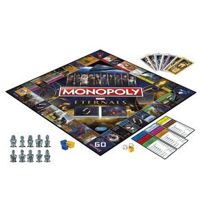 Monopoly: Jogo de tabuleiro Marvel Studios' Eternals Edition para fãs da Marvel, jogo para 2 a 6 jogadores, crianças de 8 anos ou mais - MONOPOLY GAME: EDIÇÃO ETERNALS DA MARVEL STUDIOS: Esta edição do jogo de tabuleiro Monopoly apresenta um tabuleiro com o tema Eternals, cartas, fichas e jogabilidade - INCLUI 10 MONOPOLY TOKENS: Jogue como Ikaris, Sersi, Ajak, Pak Hastos, Makkari, Druig, Gilgamesh, Thena, Kingo ou Sprite. Lance o dado cósmico dourado para ativar a habilidade de super-herói de cada personagem - AUMENTAR UNIDADES DE ENERGIA CÓSMICA: Os jogadores tentam proteger o máximo de propriedades que puderem para coletar o aluguel na forma de unidades de energia cósmica. - TABULEIRO DE JOGO COM O TEMA ETERNALS: aterrisse em locais e transportes familiares, como Gilgamesh's Cabin e Kingo's Jet. Cobre mais aluguel se você possui o Sextante Celestial ou o Astrolábio Celestial - PARA FÃS DE ETERNALS: Este jogo de Monopólio permite que os jogadores se imaginem em uma viagem no tempo com os Eternos, protetores da raça humana! O jogo é para crianças de 8 anos ou mais, para 2 a 6 jogadores