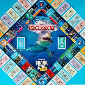 - Traga os avistamentos do mar profundo com este grande giro azul no jogo de negociação rápida e de propriedade para entusiastas dos moradores do oceano! Criado em parceria com a Semana do Tubarão da Discovery Channel, o Monopoly: Predators of the Deep Edition permite que os jogadores saibam ainda mais sobre esses fascinantes peixes enquanto compram, vendem e comercializam etiquetas de câmera e satélite de suas espécies favoritas, incluindo o grande tubarão branco, tubarão-tigre, Megamouth e muito mais!
