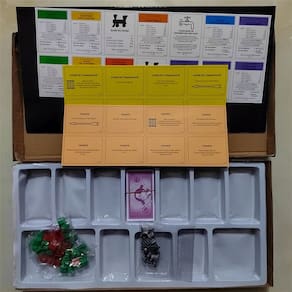 Material: papel Cor: verde Tamanho do pacote: 39 × 5,5 × 26,8 cm Peso do pacote: 0,6 kg Lista de embalagem: 1 x ONOPO Board Game Classic Property Trading Board Game — ONOPO é um divertido jogo de tabuleiro de estratégia inspirado na jogabilidade clássica de negociação de propriedades, onde os jogadores compram, negociam e gerenciam propriedades. Jogo estratégico de investimento imobiliário — Os jogadores competem para construir impérios imobiliários, cobrar aluguel e tomar decisões inteligentes de investimento para se tornarem os jogadores mais ricos. Perfeito para uma noite de jogos em família — Projetado para amigos e familiares, este envolvente jogo de mesa traz emoção, competição e pensamento estratégico às reuniões. Fácil de aprender e jogar — Regras simples o tornam acessível para iniciantes e, ao mesmo tempo, oferecem profundidade estratégica que mantém os jogadores engajados durante todo o jogo. Conjunto completo de jogos de tabuleiro — Inclui tabuleiro, cartas, dados e fichas, tornando-o uma experiência completa de entretenimento de mesa para festas e atividades familiares.