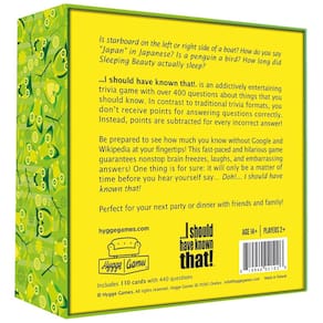 Eu Deveria Saber Disso é um jogo de perguntas e respostas com mais de 400 perguntas sobre coisas que todos deveriam saber. É rápido, hilário e viciante, ideal para festas ou jantares com amigos e família. O jogo contém 110 cartões desafiadores e pode ser jogado por até 2 jogadores. A caixa do jogo tem dimensões de 14,48 cm x 14,48 cm x 4,57 cm. Diferentemente de outros jogos, os jogadores não ganham pontos por respostas corretas, mas sim têm pontos subtraídos para cada resposta incorreta. Esteja preparado para testar seus conhecimentos sem o auxílio do Google ou da Wikipedia!