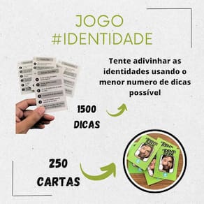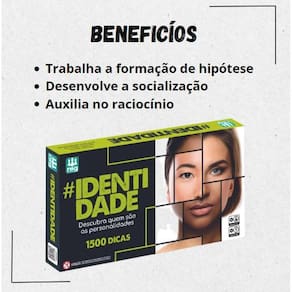 Que tal jogar um super jogo com a fámilia e amigos A bms distribuidora trás para você uma ótima opção de passatempo Jogo identidade, um super jogo com 250 cartas de identidades de artistas, atletas, figuras históricas e muito mais tente adivinhar as identidades usando o menor número de dicas possível Gostou Adquira já o seu, estamos esperando o seu pedido medidas aproximadas da caixa: -altura: 6cm -comprimento: 25cm -largura: 45cm beneficíos: -desenvolve diversas habilidades -trabalha a criação de hipóteses -desenvolve o raciocínio -desenvolve a socialização conteudo: -1 tabuleiro em material cartonado -4 peões coloridos -250 cartas