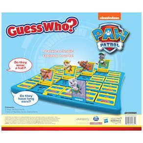 Este é o jogo Adivinha quem com os personagens favoritos da Patrulha Canina. Nele, cada jogador escolhe um personagem misterioso e faz perguntas de sim ou não para tentar adivinhar os personagens dos outros jogadores. O primeiro a adivinhar corretamente ganha o jogo. É fácil de configurar e jogar, tornando se uma ótima opção de presente para fãs de PAW Patrol. O jogo inclui 2 bandejas de jogo de mesa clássicas, 48 cartas com figuras da Patrulha Canina, 1 baralho de cartas misteriosas da Patrulha Canina e instruções para 2 jogadores de 6 anos. O tempo de jogo é de 15 minutos.