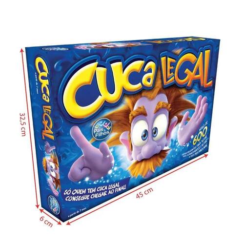 Neste Jogo você terá que mostrar seus conhecimentos sobre vários assuntos!Para vencer você deverá ser melhor em tudo, respondendo questões sobre Atualidade, Geografia, Português, Esportes entre outros temas. Acertando as respostas, você poderá avançar as casas no tabuleiro até chegar á casa chegada. Se errar a resposta, deverá voltar o número de casas tiradas no dado e assim ficará mais distante da vitória. Mais de 600 perguntas para testar seus conhecimentos e botar a cuca para funcionar! Só quem tem cuca legal consegue chegar até o final. Estimula a criatividade, convívio social, agilidade, e também o raciocínio. Medidas do Tabuleiro: 54 x 40 cm. Medidas da caixa: 45 x 32 x 7 cm. Idade: a partir de 7 anos. A partir de 2 a 6 jogadores Contem: 1 tabuleiro, 6 peões, 1 dado 112 cartas com 6 perguntas cada IMAGENS Meramente Ilustrativas