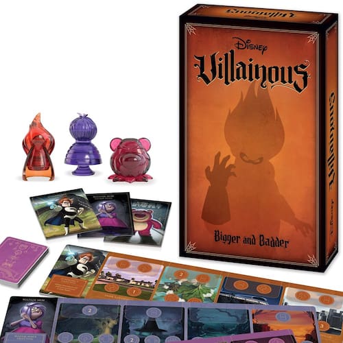 Jogo de tabuleiro de estratégia Ravensburger Disney Villainous: Bigger and Badder | Para 2 a 3 jogadores com 10 anos ou mais | Apresenta novos vilões | Jogo independente em série premiada - APRESENTANDO NOVOS VILÕES: Experimente a astúcia dos novos vilões da Pixar, incluindo Síndrome (Os Incríveis) e Lotso (Toy Story 3), além da infame Madame Mim (A Espada na Pedra), nesta adição à premiada Disney Série Villainous - EXPANDA SEU JOGO: Embora Bigger and Badder seja um jogo completo para 2 ou 3 jogadores, ele também foi projetado para misturar e combinar com outros jogos Disney Villainous, para até seis jogadores - IDEIA DE PRESENTE PERFEITA: Ideal para jogadores com 10 anos ou mais, Disney Villainous: Bigger and Badder é um presente memorável, prometendo entre 40 minutos a uma hora de diversão estratégica - O QUE ESTÁ INCLUÍDO: vem com três tabuleiros Realm, 3 peças esculpidas em tons de joias, 90 cartas de vilão, 45 cartas de destino, 41 fichas, 4 peças, 3 cartas de referência, 3 guias de vilões e instruções detalhadas - FÁCIL DE APRENDER: nosso livro de regras passo a passo oferece diagramas e imagens claras, ou pesquise on-line por um tutorial em vídeo sobre” Assista “Played Disney Villainous”. Cada vilão vem com um guia descrevendo dicas e estratégias para a vitória