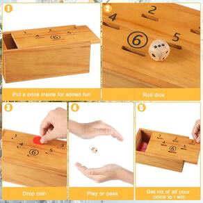 Características: Fácil de transportar: Nossa caixa de madeira para jogo de moedas pode ser facilmente transportada, armazenada ou exibida sem consumir muito espaço. Seja em uma noite de jogo ou em uma viagem de acampamento, esta caixa de jogo compacta e espaçosa garante que suas moedas e dados sejam facilmente acessíveis. Cores esteticamente agradáveis: Cativante visualmente, a caixa de madeira do jogo de moedas apresenta uma cor de madeira natural, contrastada por moedas de plástico vermelhas ousadas e festivas. Peças de cores vibrantes não apenas aumentam o espírito festivo, mas também facilitam a visibilidade durante o jogo. Especificações: Material: Cor: cor de madeira, vermelho Tamanho: Caixa de jogo de madeira: cerca de 6,9 x 3,9 x 2,8 polegadas/17,5 x 10 x 7 cm Dados de madeira: cerca de 0,6 polegadas/1,6 cm de diâmetro Moeda de plástico: cerca de 2,5 cm de diâmetro A embalagem inclui: 1 caixa de madeira Penny Game. 6 dados de madeira. 60 moedas de plástico. Observações: Medição manual, considere pequenos erros no tamanho. A cor pode existir uma pequena diferença devido a diferentes telas. - Pacote completo: nosso pacote inclui 1 caixa de madeira de um centavo, 6 dados de madeira e 60 moedas de plástico, 1 manual de jogo fácil de entender; com nosso conjunto de jogos, você pode realizar sua experiência de jogo facilmente e criar memórias para se divertir - Tamanho detalhado: a caixa do jogo tem cerca de 17,5 x 9,9 x 7,1 cm, feita de madeira, cuidadosamente polida para garantir bordas arredondadas e superfície lisa; o diâmetro da moeda de plástico é de 2,5 cm e o diâmetro dos dados é de 1,6 cm; O tamanho é adequado para realizar - Usos versáteis: seja em um acampamento, piquenique ou um dia no parque, nosso jogo de dados de moedas é o acessório ideal para diversão ao ar livre; fácil de configurar e jogar, pode proporcionar horas de entretenimento para toda a sua família ou amigos, tornando-o um item essencial ao ar livre - Para a maioria das pessoas: nossos jogos de tabuleiro de Natal são adequados para mais de 2 jogadores, 60 centavos podem ser divididos igualmente de acordo com o número de pessoas, o objetivo é esvaziar todas as moedas primeiro; para começar a rolar os dados, coloque centavos no número correspondente para evitar dobrar e esses centavos serão coletados; continue jogando os dados, quem eliminar todas as moedas primeiro ganha; antes de começar, aposte prêmios como candelabros y, bonecas, dinheiro na caixa para adicionar emoção - Jogos de tabuleiro de madeira: os jogos de tabuleiro de madeira são fáceis, mas desafiadores e podem ser facilmente escolhidos, criando oportunidades de troca emocional; permitem que você relaxe e aproveite horas de diversão em festas de aniversário, noites de jogos, viagens de acampamento e outras ocasiões, ideal para o Natal, Halloween, Mardi Gras e outros feriados, ou como um presente para seus amigos e familiares criarem memórias felizes