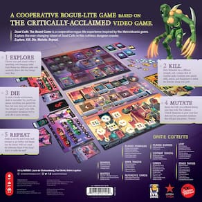 UM JOGO ROGUE-LITE COOPERATIVO BASEADO NO VIDEOGAME CRITICAMENTE ACLAMADO O Malaise infectou a ilha. Escolha um dos quatro decapitados e entre nesta experiência cooperativa Rogue-Lite inspirada no gênero Metroidvania. Um rastreador de masmorras implacável. Comece nos aposentos dos prisioneiros, explore uma ilha em constante mudança e abra caminho através da horda de inimigos infectados pelo mal-estar até o Castelo High Peak para desafiar a infame Mão do Rei. Ou morra tentando. Explore. Matar. Matriz. Mutação. Repita. - Uma fiel adaptação de mesa da obra-prima do videogame: o primeiro jogo de tabuleiro Rogue-Lite inspirado no gênero Metroidvania - Uma abordagem artística autêntica fiel ao universo Dead Cells - Uma experiência de jogo altamente viciante: cada jogo é sobre jogar e morrer, de novo e de novo, indo mais longe e descobrindo mais todas as vezes - Jogabilidade "sem fim": mais conteúdo e desafios depois de derrotar o chefe final através do sistema "Boss Cells" - Modo solo incluído: Serenata, a espada voadora será sua nova companheira!
