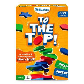 ATÉ O TOPO! é um jogo simples de combinação e equilíbrio com um toque especial! Corra para ser o primeiro a terminar suas formas, subindo a torre, e ganhe uma Super Star! A rodada se repete até que um jogador ganhe duas Super Stars e ganhe o jogo! Com regras de empilhamento que você deve lembrar e cartas poderosas que podem salvá-lo da derrota, este jogo exigirá que você pense estrategicamente ao correr ATÉ O TOPO!