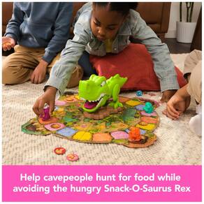 Spin Master Games, jogo de tabuleiro Snack-O-Saurus Rex para fãs de dinossauros, jogo infantil, jogo divertido para família, jogo de tabuleiro para uma noite de jogos em família, para maiores de 5 anos - FUJA DA LÍNGUA DOS DINOSSAUROS: ajude pessoas famintas das cavernas a caçar comida enquanto se esquiva do lendário Snack-O-Saurus Rex. Pegue um lanche ou relaxe neste jogo muito divertido! - CAÇA E COLETE DIVERSÃO: reúna de 2 a 4 jogadores com mais de 5 anos que adoram lanches, aventuras na selva e evitar línguas de dinossauros para coletar petiscos deliciosos, como o saboroso taco-dáctilo e a pizza pré-histórica, ao longo do caminho. - PACOTE DE LANCHES: Colete dois pares de lanches para ganhar! Cuidado: o dinossauro que adora comida pegará lanches extras quando você soltar sua língua super longa. Mire o dinossauro no lanche para pegar uma guloseima ou mire em um oponente para mandá-lo de volta! - SPIN MASTER: Precisa de presentes para fãs de brinquedos de dinossauros, lanches para crianças e jogos divertidos? Compre jogos e brinquedos, como brinquedos de dinossauro para crianças de 5 a 7 anos, jogos de tabuleiro para crianças de 8 a 12 anos e presente de aniversário para meninas de 6 anos. - JOGOS DE TABULEIRO PARA A NOITE EM FAMÍLIA: Traga mais do que fichas para a noite de jogos em família com um de nossos jogos de tabuleiro familiares, jogos familiares, jogos de estratégia, jogos para adultos, jogos divertidos de festa ou jogos de tabuleiro para crianças de 4 a 6 anos. - Inclui 1 Snack-O-Saurus Rex (dinossauro e pés), 1 base, 1 conector de base, 1 tabuleiro de jogo, 20 lanches (4 de cada tipo), 4 pessoas da caverna, 1 dado, folha de instruções — coberta pelo compromisso da Spin Master Care. Veja abaixo os detalhes completos