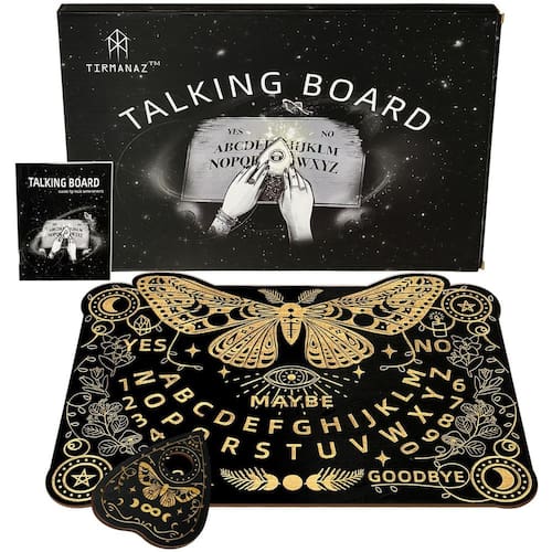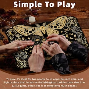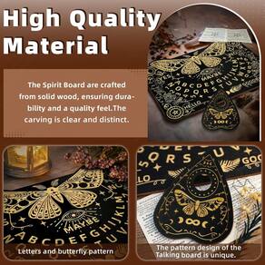 O Spirit Board é feito de madeira de qualidade, fácil de usar, tornando-o acessível para iniciantes, para que você e seus amigos possam começar a se comunicar com o outro lado imediatamente. Para jogar, é ideal para duas pessoas se sentarem frente a frente e colocarem levemente as mãos no quadro falante. - Jogo de tabuleiro Spirit - as letras trabalhadas e o padrão de borboleta no tabuleiro de espírito criam uma bela estética. O tabuleiro de madeira é projetado para dois ou mais jogadores e é acessível para iniciantes, especialmente quando equipado com o guia do tabuleiro falante. - ?Simples de jogar? - A decoração Taking Spirit Board é fácil de usar, você e seus amigos podem começar a se comunicar com o outro lado imediatamente. Para brincar, é ideal para duas pessoas se sentarem frente a frente e colocarem levemente as mãos na tábua de madeira. Enquanto alguns o veem como apenas um jogo, outros o veem como algo muito mais profundo. - ?Material de alta qualidade? - A placa de madeira tem dimensões de 29,5 x 20 cm e uma espessura de 0,3 cm. Além disso, o pequeno quadro falante em forma de coração mede 8,4 x 10,4 cm. Ambos são feitos de madeira maciça, garantindo durabilidade e uma sensação de qualidade. - ?Ampla aplicação? - O quadro Butterfly Spirit é utilizado em vários ambientes, incluindo reuniões sociais para diversão, práticas espirituais para comunicação com espíritos e eventos de Halloween para uma atmosfera assustadora. Além disso, pode ser utilizado em investigadores paranormais, arte, etc. - ?O que você receberá? 1 quadro falante de madeira de alta qualidade, 1 quadro de mensagens pequeno em forma de coração, 1 guia de tabuleiro de espírito de madeira. Será um presente maravilhoso para seus amigos ou familiares que estão interessados em coisas assustadoras ou metafísicas.