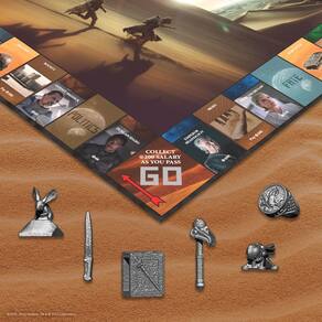 Experimente os mistérios da vida por meio de um dos maiores contos da ficção científica contemporânea com o melhor jogo para fãs de Dune. MONOPOLY: Dune permite que os jogadores comprem, vendam e troquem influência com personagens de diferentes facções da franquia épica, como Paul, Emperor Shaddam, Princess Irulan e muito mais. Viaje pelo tabuleiro com fichas colecionáveis personalizadas baseadas em itens do filme: Muad'Dib, Crysknife, Gom Jabbar, Maker Hooks, Ornithopter e Ducal Ring. Com cartas do Destino e da Política nos papéis das tradicionais cartas Chance e Community Chest, moedas personalizadas das Dunas e cartas personalizadas de Deed. Supere as consequências do Destino e da Política para ser o último buscador da especiaria que pode vencer! Cada jogo contém: 1 tabuleiro de jogo 6 fichas colecionáveis 28 cartas de título 16 cartas comunitárias “Política” 16 cartas de chance renomeadas para cartas “Destino” Monopólio personalizado Solari (dinheiro) 32 casas renomeadas para “Leverage” 12 hotéis renomeados para “Lealdade” 2 dados 1 conjunto de regras de 2 a 6 jogadores, maiores de 8 anos - Experimente os mistérios da vida em um dos maiores contos de ficção científica contemporânea com o melhor jogo para fãs de Dune. - Dune permite que os jogadores comprem, vendam e troquem influência com personagens de diferentes facções da franquia épica, como Paul, Emperor Shaddam, Princesa Irulan e muito mais. - 2 a 6 jogadores, maiores de 8 anos | Mais de 60 minutos de tempo de jogo - Inclui: 1 tabuleiro de jogo, 6 fichas colecionáveis, 28 cartas de título, 16 cartas comunitárias renomeadas como “Política”, 16 cartas de chance renomeadas como “Destino”, Monopólio Solari (dinheiro) personalizado, 32 casas renomeadas como “Alavancagem”, 12 hotéis renomeados como “Lealdade”, 2 dados, regras