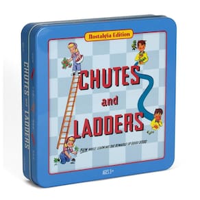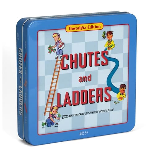 WS Game Company Chutes and Ladders Nostalgia Edition Jogo de tabuleiro em lata colecionável - – Experimente a diversão clássica de calhas e escadas, embalada em uma bela lata colecionável com arte inspirada na edição de 1956. Uma adição atemporal a qualquer coleção de jogos de tabuleiro! - Projetado para crianças a partir de 3 anos, este jogo ajuda a desenvolver habilidades numéricas precoces, paciência e turn-taking. Um presente ideal para aniversários e feriados! - – Não é necessário leitura! Jovens jogadores simplesmente giram a flecha, movem suas peças e experimentam os altos e baixos da vida — perfeito para crianças em idade pré-escolar. - Chutes and Ladders Nostalgia Edition faz parte da série de estanho colecionável WS Game Company que inclui 8 jogos clássicos em caixas de lata resistentes com belas obras de arte retrô. Colecione todos! - – Uma ótima maneira para pais e avós compartilharem um favorito da infância enquanto ensinam às crianças lições valiosas sobre recompensas e consequências. - O jogo vem em uma lata de metal resistente para armazenamento seguro e fácil transporte, garantindo que permaneça um jogo precioso por anos. Mede 27 x 27 x 6 cm, pesa cerca de 900 g. - - – Inclui um tabuleiro vintage de tamanho normal, spinner antiquado e 4 peças de plástico fosco em formato de criança, mantendo-se fiel ao amado design autêntico. - Perfeito para pequenos grupos e laços familiares, tornando a noite de jogo mais emocionante para todos. - Projetado em Massachusetts e feito com materiais de alta qualidade, este jogo é oficialmente licenciado pela Hasbro, garantindo autenticidade e durabilidade. - – Mais do que apenas diversão, Chutes e escadas ensina contagem, paciência e habilidades sociais, tornando-a uma valiosa ferramenta de aprendizagem para crianças pequenas.