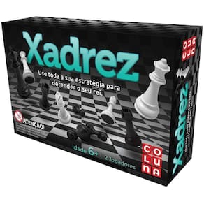 Tradicional jogo de xadrez, onde os participantes testam sua estratégia e inteligência Especificação: Marca: Coluna Idade: +6 anos ATENÇÃO: Não recomendável para crianças menores de 3 anos, por conter peças pequenas que podem ser engolidas Dimensão da embalagem: 20,5x14x5,5 cm Peso: 165 gramas Segurança INMETRO CE-BRI/ICEPEX-N 01264-25 Composição: papel cartão e poliestireno Contém: 1 tabuleiro, 32 pedras 16 brancas e 16 pretas Ref: 2199 Quantidade de jogadores: 2 jogadores Ean: 7896647021996