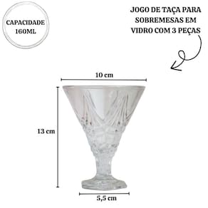 JOGO DE TAÇA PARA SOBREMESAS EM VIDRO COM 3 PEÇAS 160 ML - VDA03052