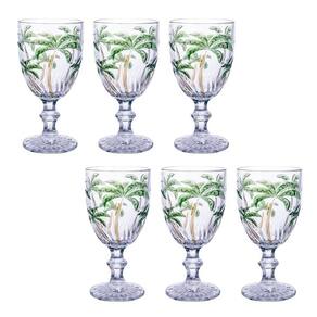 Jogo De Taças Água Palm Tree Colors 260Ml Class Home 6 Peças Lançamento 2020, a linha Palm da marca Class Home traz consigo a tendência Tropical junto a sua mesa Rica em detalhes, possui coqueiros em relevo trabalhados em seu corpo. Perfeita para deixar sua mesa posta ainda mais linda, e impressionar na hora do daquele especial. Especificação Técnica Conteúdo: 06 taças Cor: Transparente/Verde