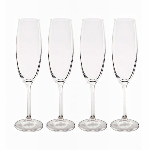 Os copos e taças da Bohemia são elaborados em Cristal leva mais brilho e transparência. Com o intuito de atender um público que gosta de apreciar boas garrafas de espumante, a taça de champanhe em cristal garante total satisfação e elegância para suas comemorações e festas. O jogo de taças de champanhe em Cristal acompanha 4 peças.